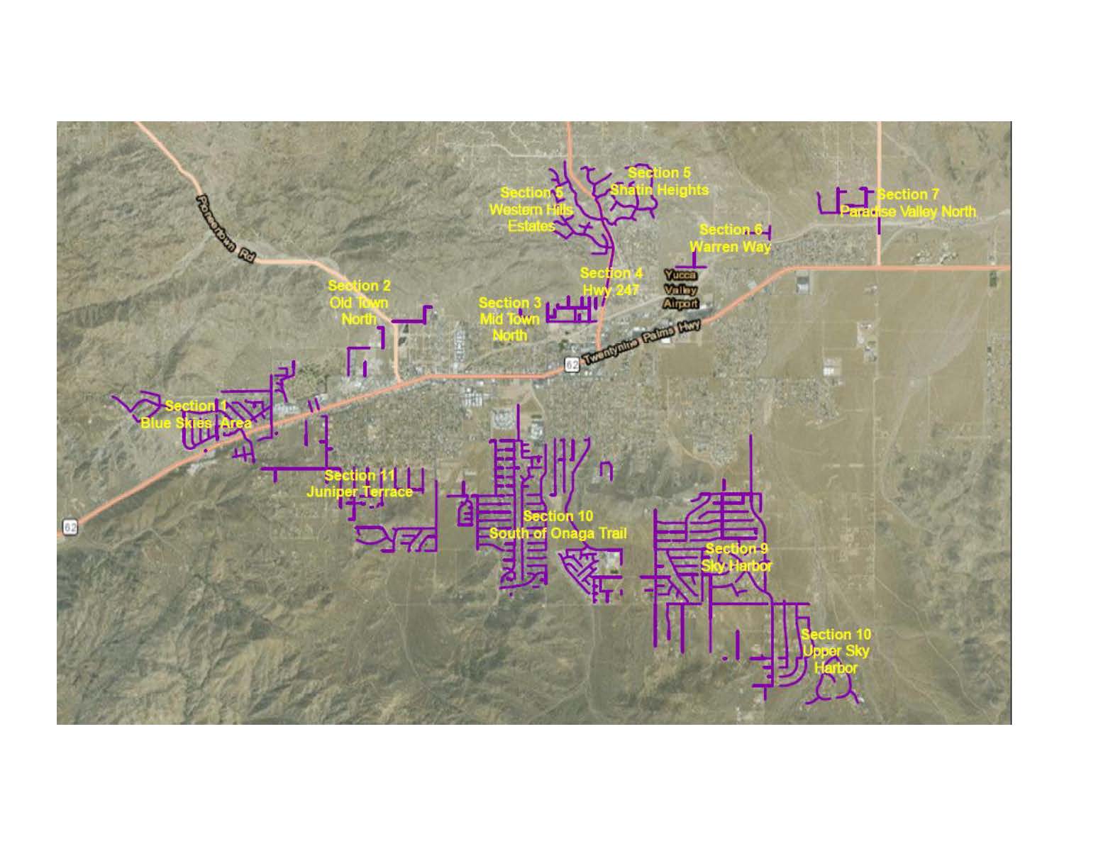 The Hi-Desert Water District (HDWD) is proposing to construct approximately 64 miles of PVC sewer pipeline, 1,300 manholes and three lift stations facilities in various areas of its service territory over the next 10 years for the purpose of decreasing the reliance on septic systems in their service territory.